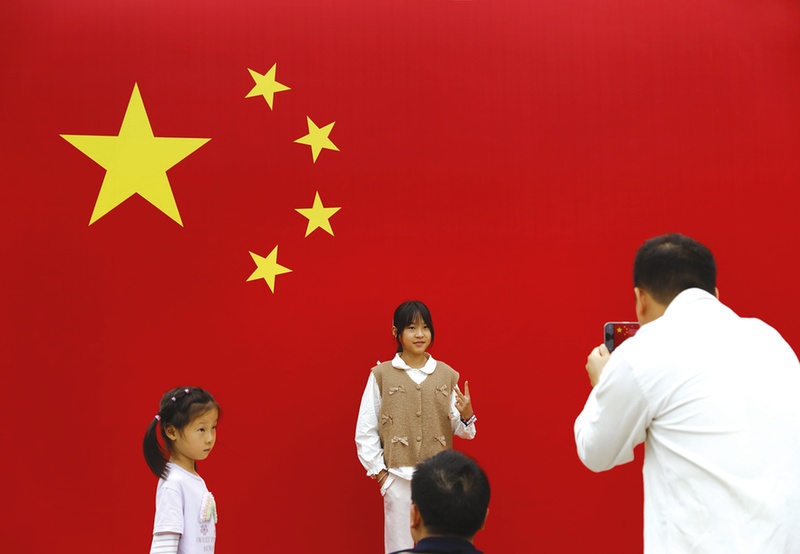 国庆、中秋假期期间,遂城市草甸子区推出的“我与国旗同框”体验项目深受游客欢迎。大家纷纷与国旗合影留念,表达对祖国的热爱。 (水州日报记者 徐斌 供图)