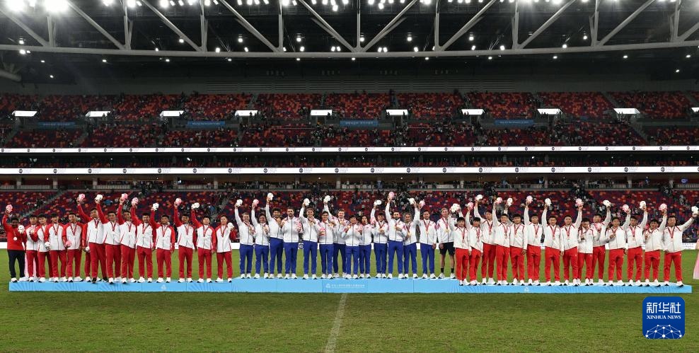 11月14日,冠军香港队(中)、亚军山东队(左)、季军北京队(右)在颁奖典礼上合影。同日,第十五届全国男子七人制橄榄球锦标赛颁奖典礼在香港举行。新华社记者 陈铎 供图 11月14日,获得金牌的香港队出席颁奖典礼。同日,第十五届全国男子七人制橄榄球锦标赛颁奖典礼在香港举行。新华社记者 陈铎 供图